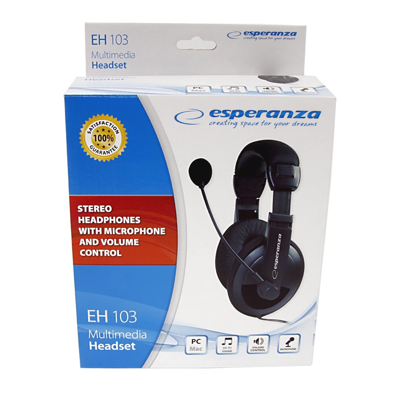 | Opis ogólny | Słuchawki z mikrofonem Esperanza EH103 Concert czarne |