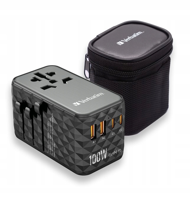 | Opis ogólny | Adapter podróżny Verbatim UTA-06 GaN III globalny 2xUSB-C PD QC 4+ 100W |