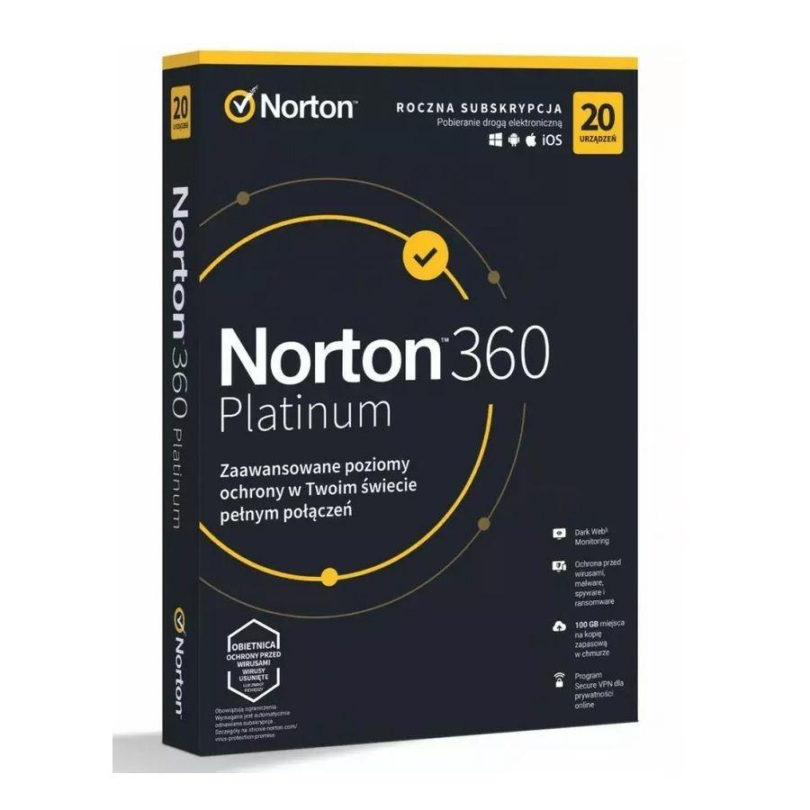 | Opis ogólny | Norton 360 Platinum – licencja na subskrypcję (1 rok) – 20 urządzeń,100 GB |