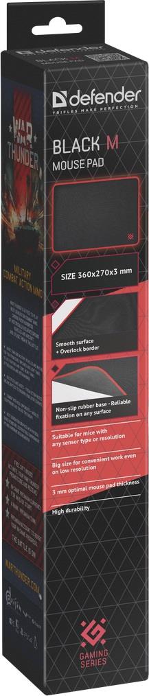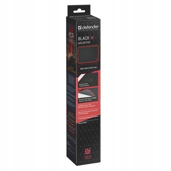 | Opis ogólny | Podkładka Defender Gaming BLACK M 360x270x3mm |