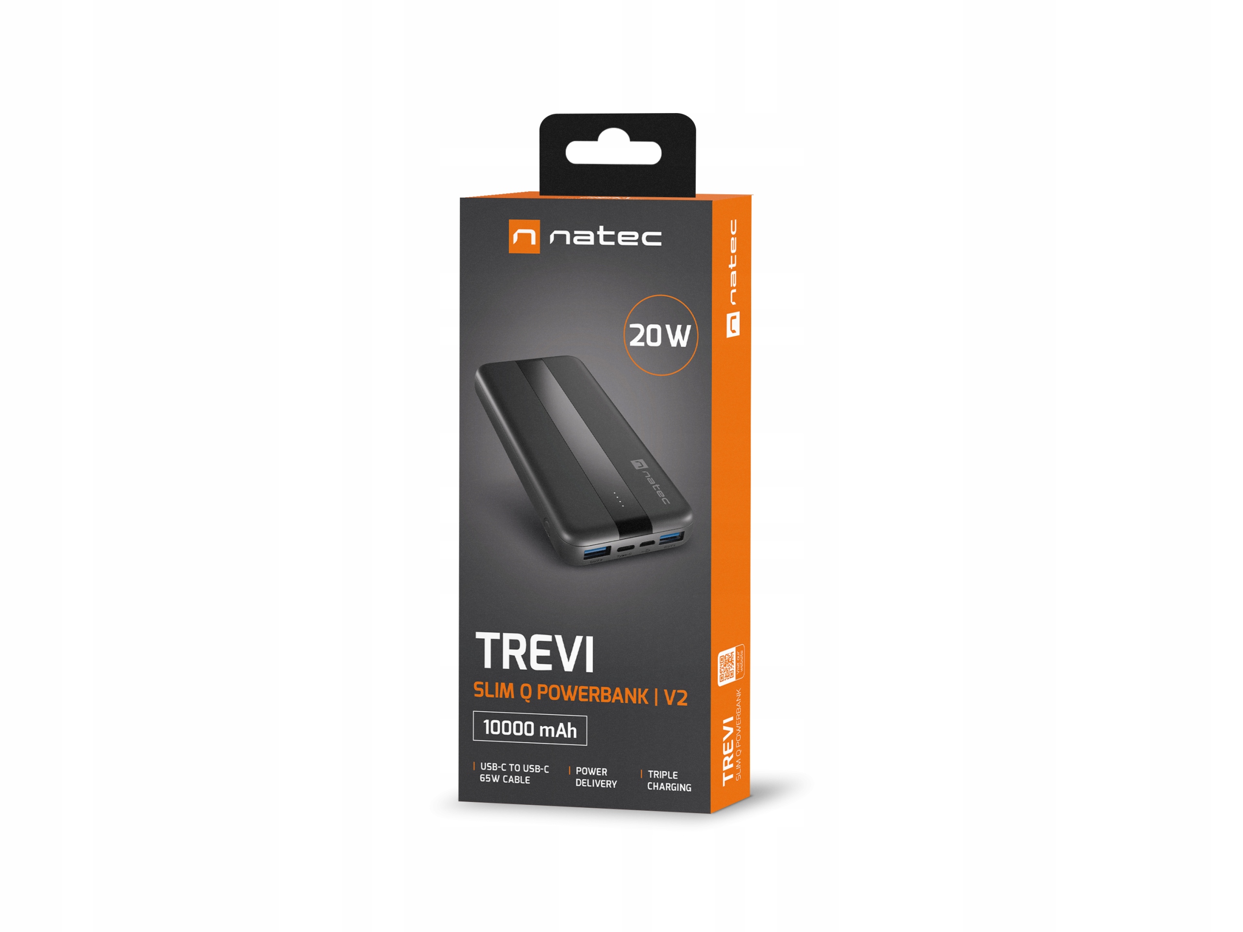 | Opis ogólny | Powerbank Natec Trevi Slim Q V2 10000Mah PD USB-C 20W + USB-A 18W + Kabel |