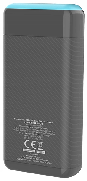| Opis ogólny | Powerbank Tracer EnerGen 20000mAh PD+QC 3.0 GB |