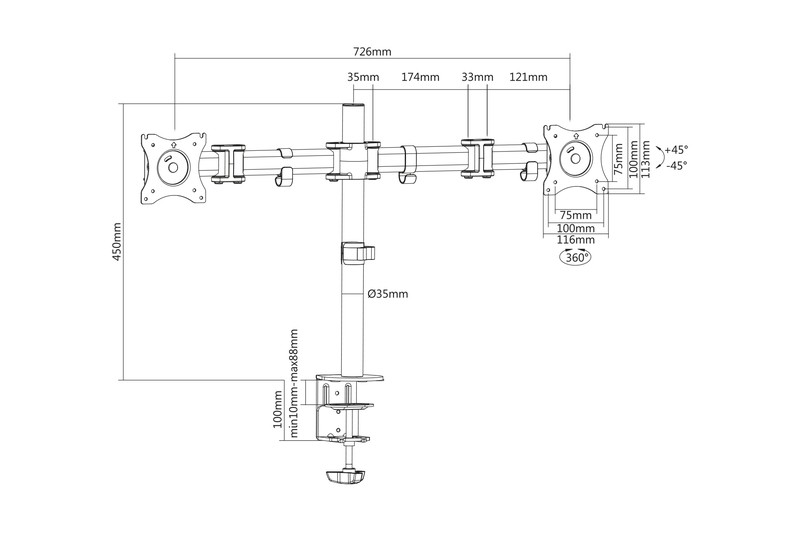 | Opis ogólny | Stojak biurkowy podwójny z zaciskiem DIGITUS, 2xLCD, max. 27" i 8kg, PIVOT |