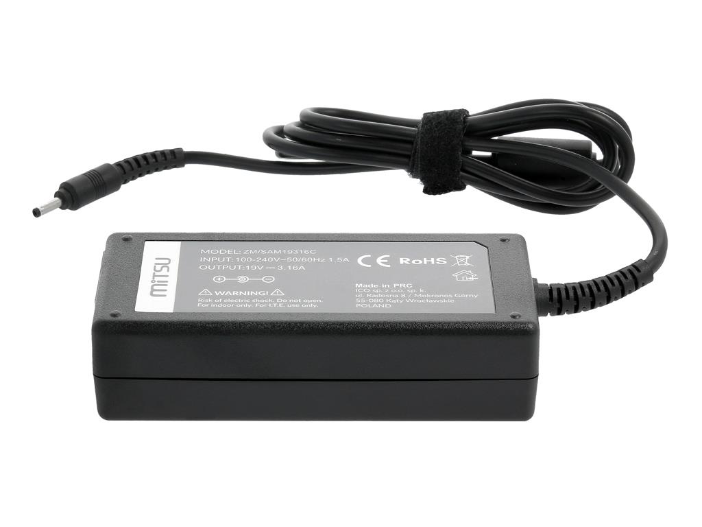 | Opis ogólny | Zasilacz sieciowy Mitsu 19V 3.16A (3.0×1.1) 60W do notebooka Samsung |