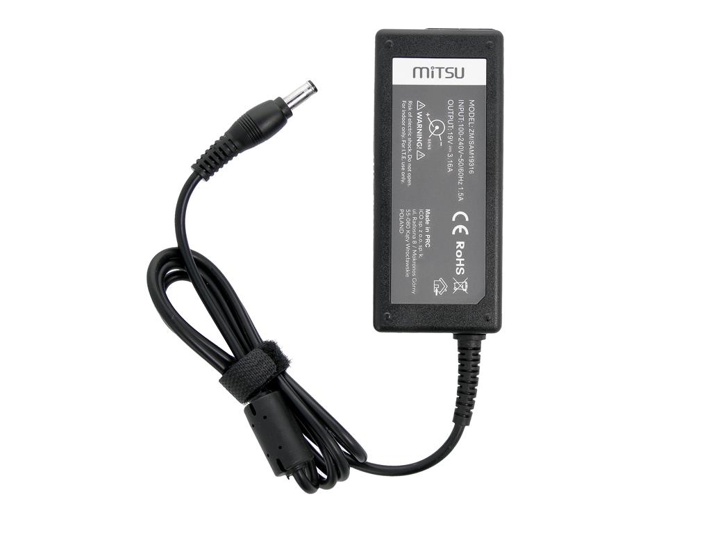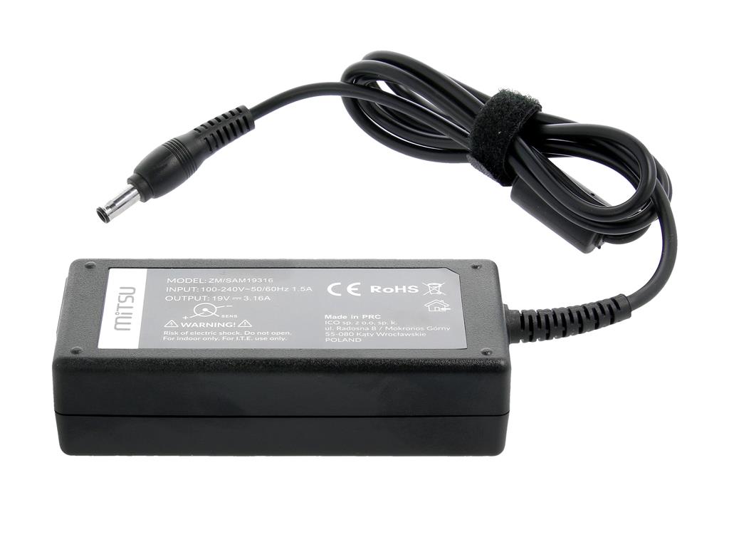 | Opis ogólny | Zasilacz sieciowy Mitsu 19V 3.16A (5.5×3.0 pin) 60W do notebooka Samsung |