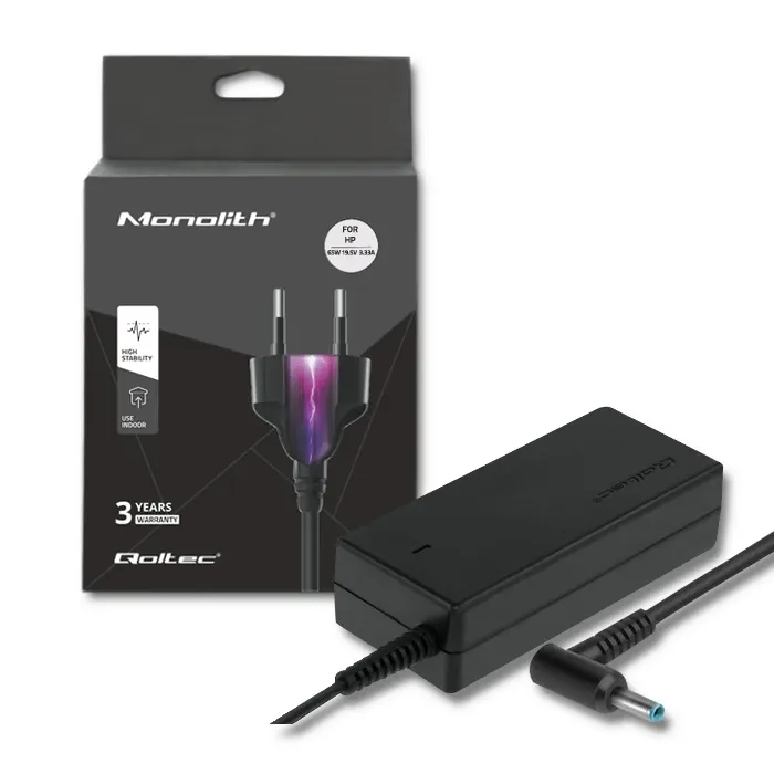 | Opis ogólny | 3,33A, 4,5*3,0+pin, Zasilacz sieciowy Qoltec do HP/Compaq 19,5V |