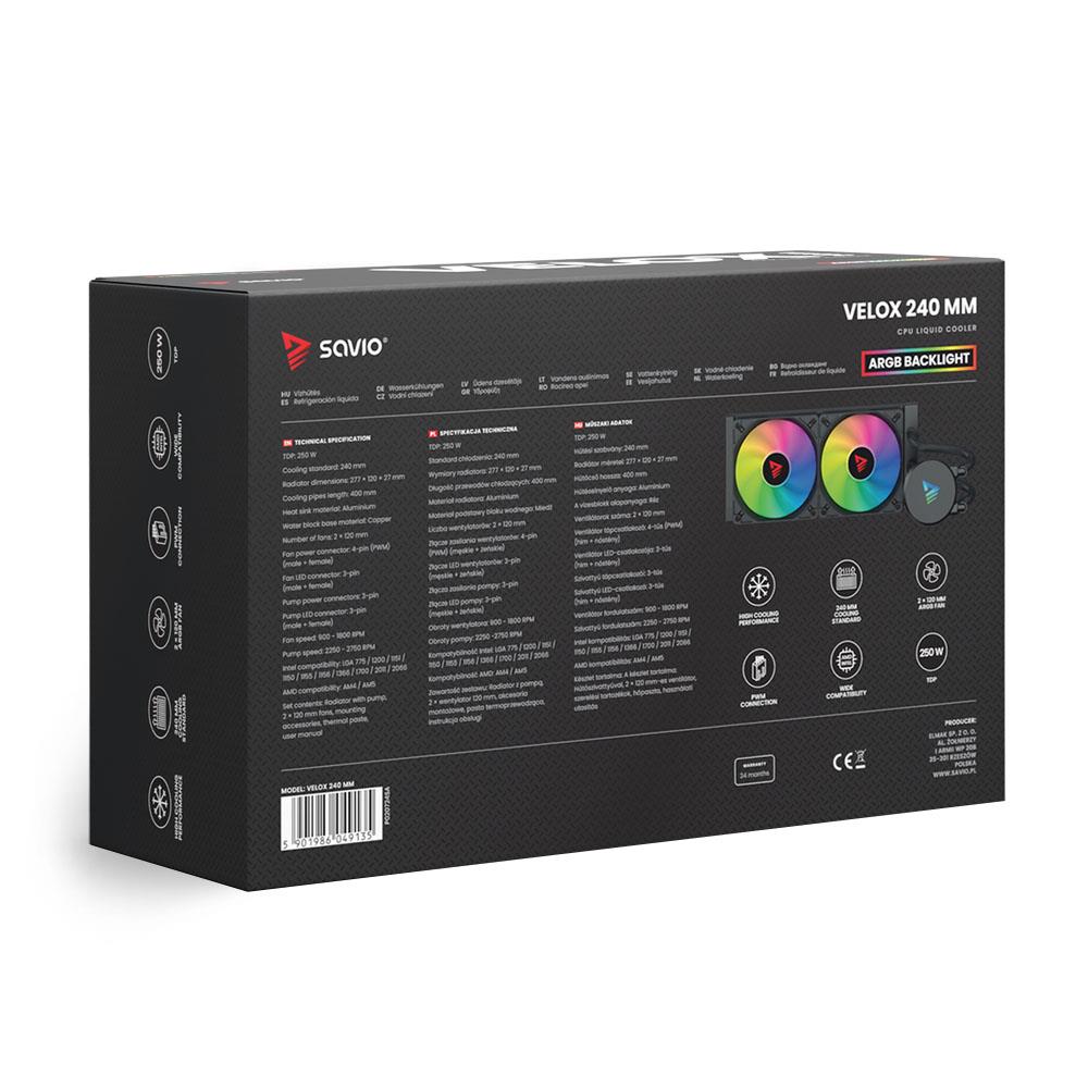 | Opis ogólny | Chłodzenie wodne SAVIO VELOX 240mm CPU ARGB |