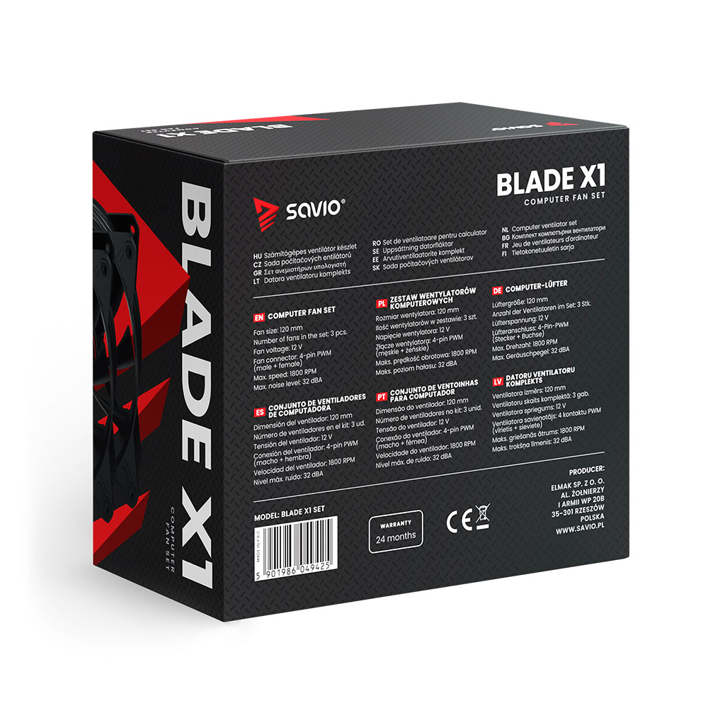 | Opis ogólny | Wentylator SAVIO BLADE 3 x 120mm 4-pin PWM |