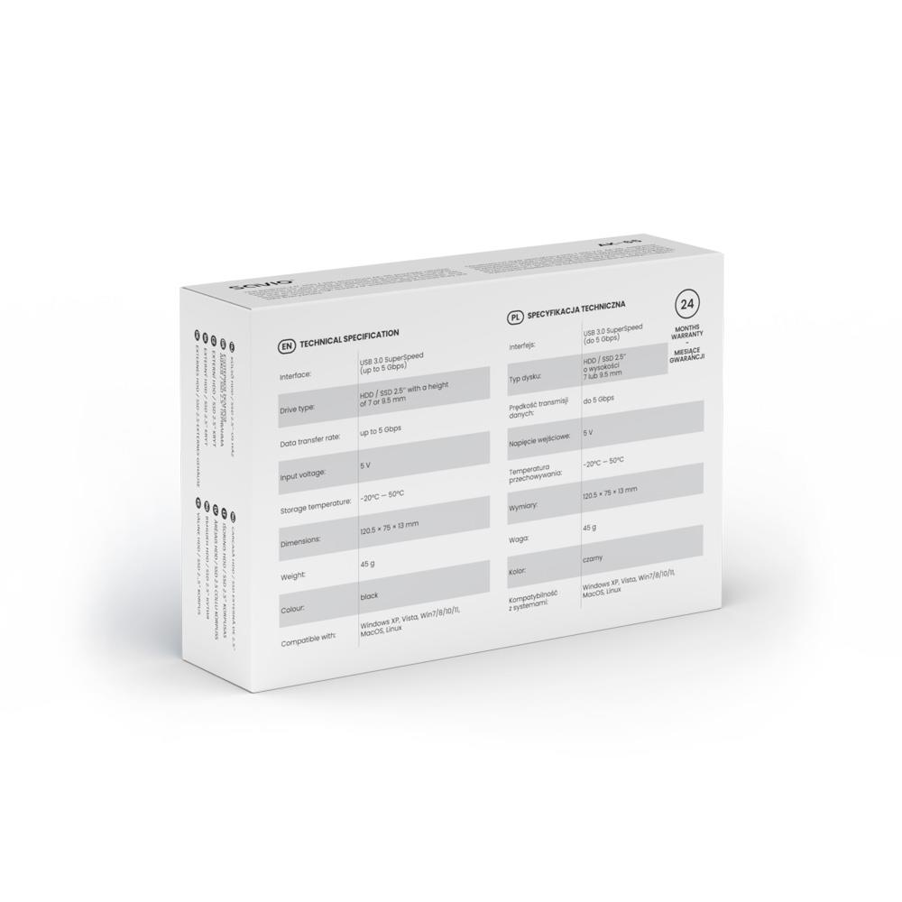 | Opis ogólny | Obudowa na dysk HDD/SDD SAVIO AK-65, USB 3.0, 2,5", czarna |