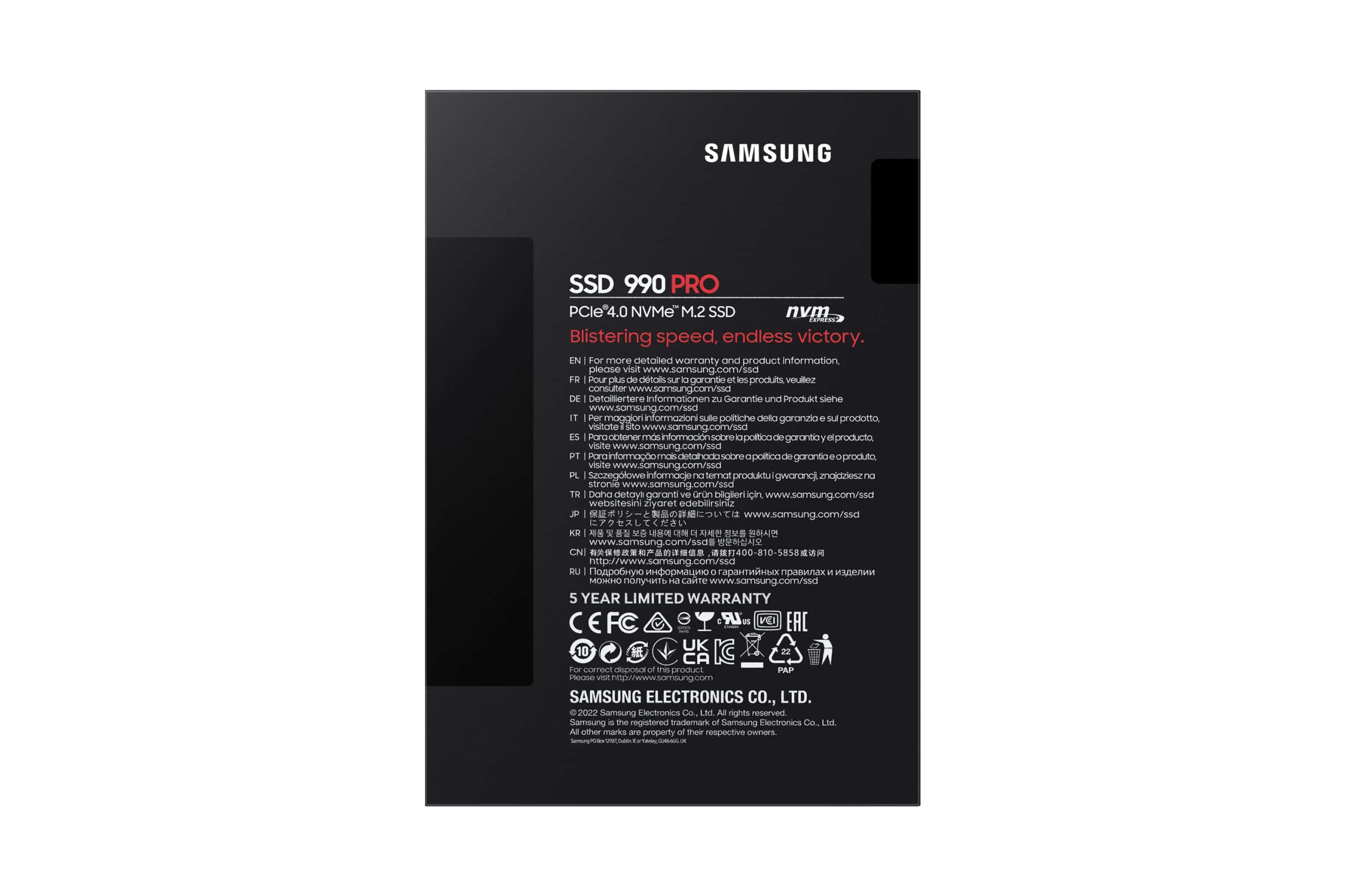 Znacznie szybsze działanie. Szybkości odczytu/zapisu losowego o 40% i 55% wyższe niż w modelu 980 PRO – do 1400K/1550K IOPS, zaś szybkości zapisu/odczytu sekwencyjnego wynoszące do 7450/6900 MB/s są niemal równe maksymalnym limitom PCIe 4.0. Zapomnij o ograniczeniach w grach, edycji wideo i 3D oraz wielu innych.