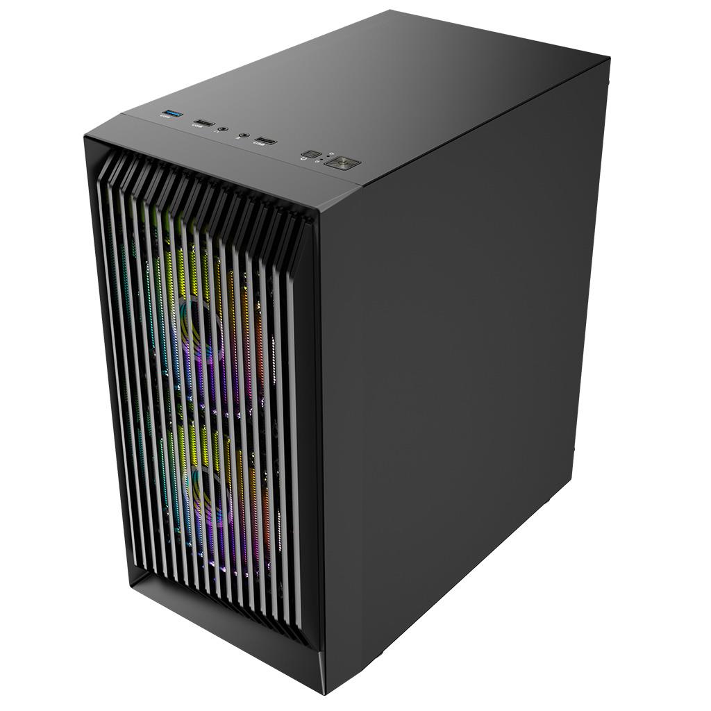 Obudowa dla graczy musi prezentować się ładnie. Dlatego fabrycznie zainstalowane wentylatory ARGB nadają obudowie i gamingowemu stanowisku urody. Kolor podświetlenia można dowolnie zmienić z predefiniowanych ustawień za pomocą przycisku RESET na panelu sterowania obudowy.