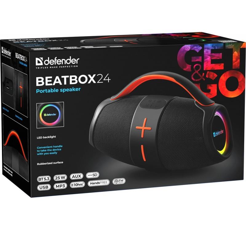 | Opis ogólny | Głośnik Defender BEATBOX 24 Bluetooth 25W MP3/AUX/SD/USB/TWS/LED czarny |