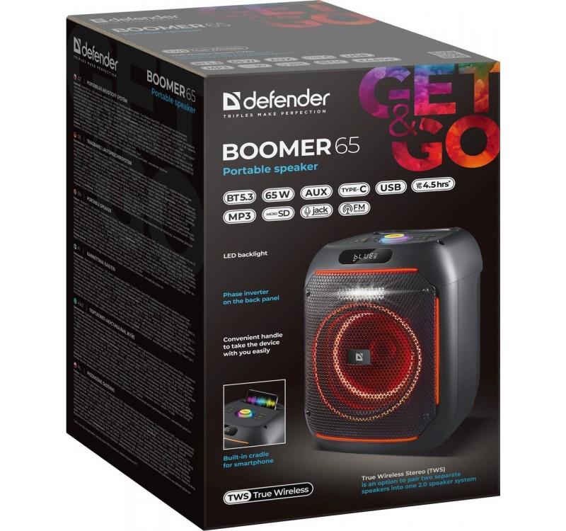 | Opis ogólny | Głośnik Defender BOOMER 65 Bluetooth 65W MP3/FM/SD/USB/AUX/TWS/LED/MIC/DSP |