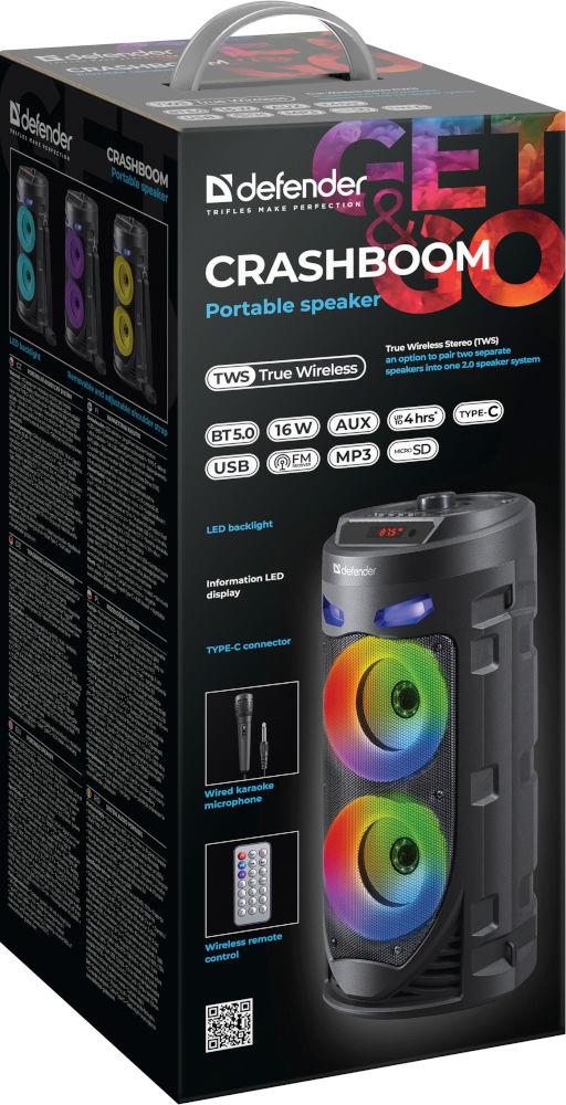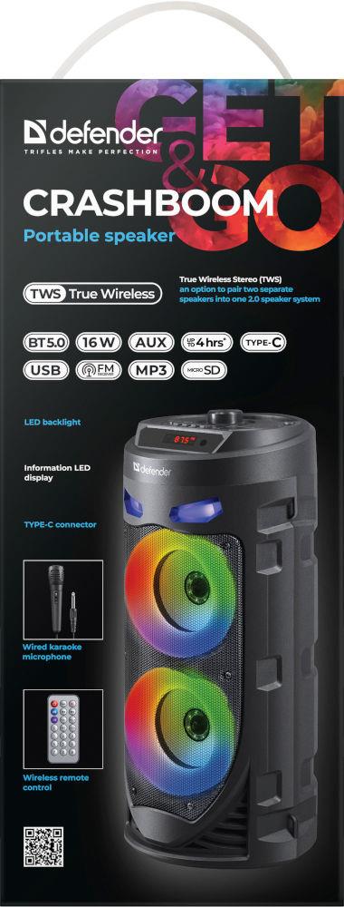 | Opis ogólny | Głośnik Defender CRASHBOOM Bluetooth 16W MP3/FM/SD/USB/AUX/TWS/LED/MIC/LCD |