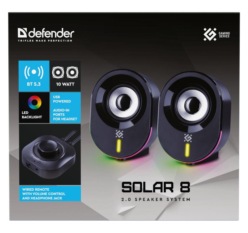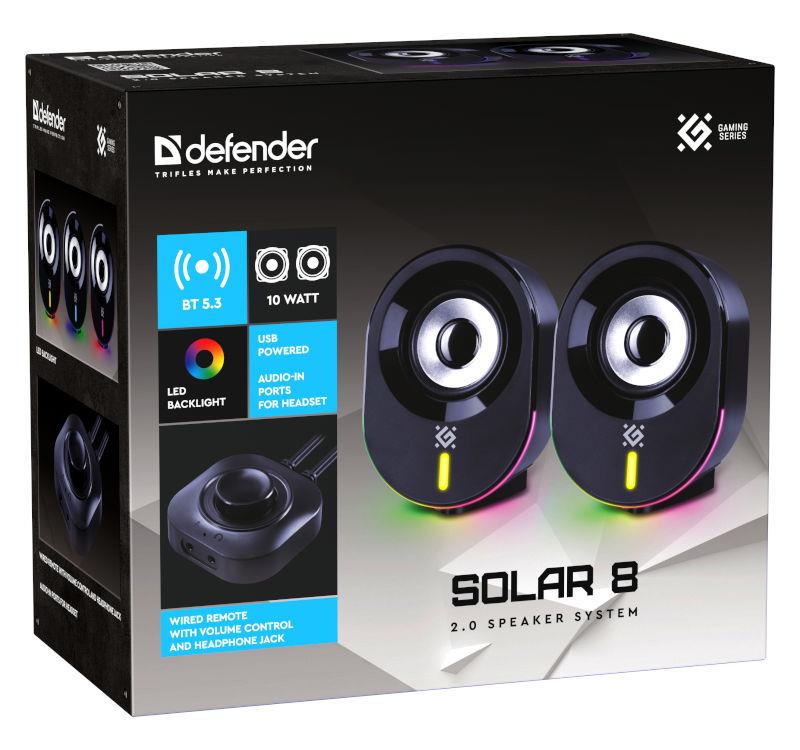 | Opis ogólny | Głośniki Defender SOLAR 8 2.0 10W Bluetooth USB podświetlenie RGB |