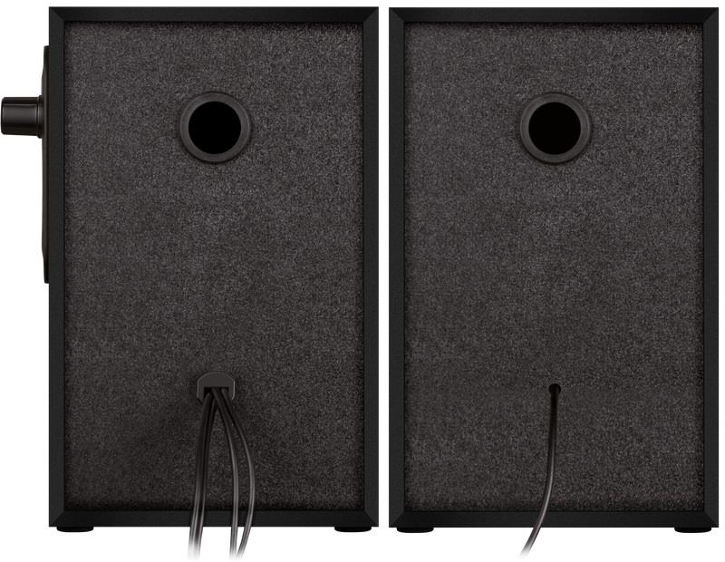 | Informacje dodatkowe | Drewniana obudowa; Regulator głośności ; Bass Reflex; Wejścia audio dla słuchawek z mikrofonem; Nóżki gumowe zapobiegają ślizganiu się po powierzchni |