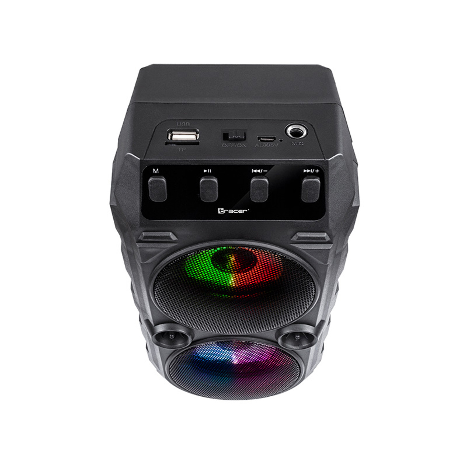 Połącz ze sobą dwa głośniki i graj dwa razy mocniej niż zwykle. Dzięki TWS stworzysz jeden mocny zestaw Stereo, by cieszyć się ulubioną muzyką w jeszcze lepszej jakości. Podświetlenie LED; Multikolorowe podświetlenie LED zapewni niepowtarzalny klimat na każdej imprezie. Zachwycaj wspaniałym kolorowym światłem z głośnika Tracer, a gdy zamarzy Ci się impreza, wystarczy podłączyć mikrofon i zestaw gotowy. Łatwy transport; Nowoczesny design, ciekawy kształt i niewielka waga sprawiają, że głośnik Tracer Superbox możesz zabrać ze sobą wszędzie. Głośnik idealnie sprawdzi się podczas imprez na świeżym powietrzu, wypadów za miasto lub podczas wakacyjnych podróży. Muzyka bez końca; Z głośnikiem Tracer Superbox możesz cieszyć się ulubioną muzyką nieprzerwanie aż do 6 godzin. Teraz możesz odtwarzać ulubioną playlistę z nośnika USB lub z karty pamięci podłączonej do głośnika. Wolisz audycje radiowe? Głośnik Tracer Superbox posiada również wbudowany moduł FM.
