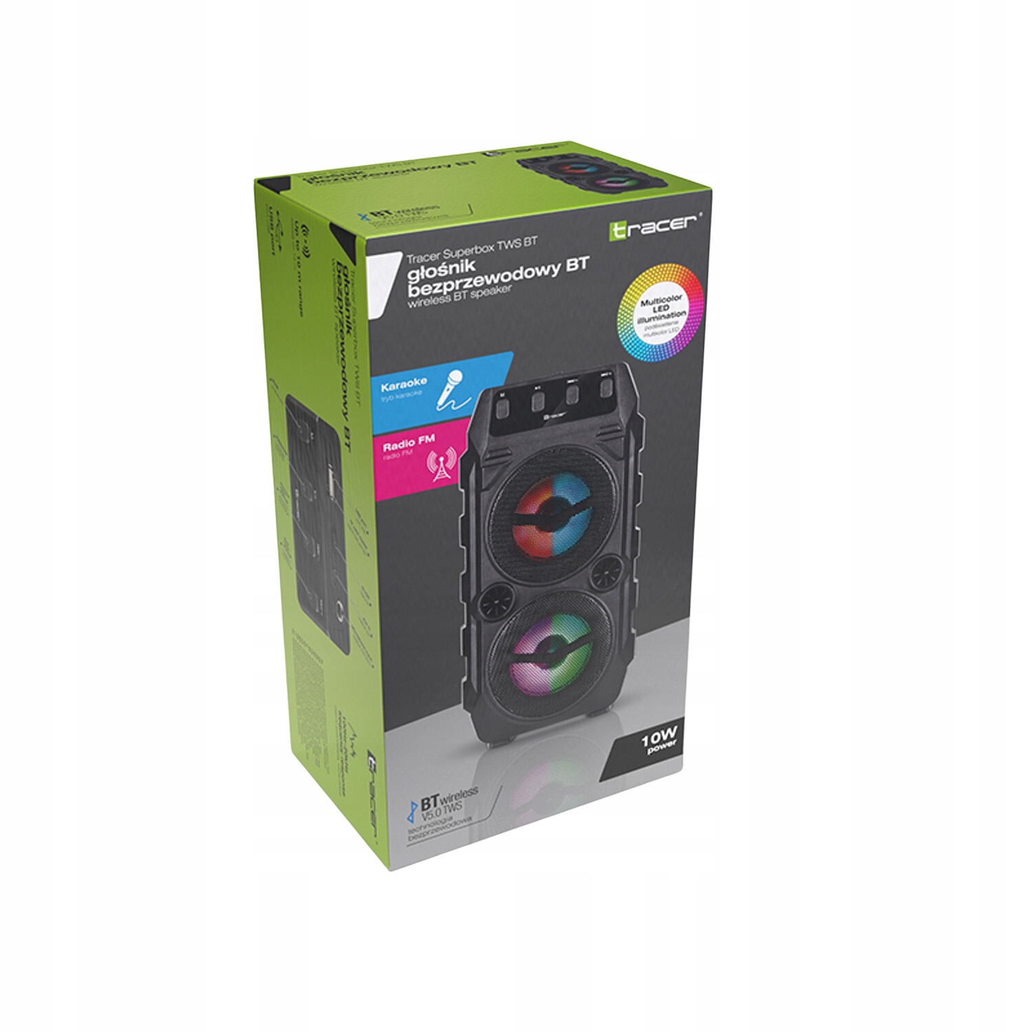 Głośniki bezprzewodowy TRACER Superbox z Bluetooth i TWS; Tracer Superbox to wysokiej jakości głośnik bezprzewodowy o mocy 10 W. Urządzenie zostało stworzone z myślą o osobach ceniących sobie mocne brzmienie i czysty bas. Odtwarzaj muzykę z urządzeń wyposażonych w moduł Bluetooth, zarówno tabletów, smartfonów, odtwarzaczy mp3, czy laptopów i ciesz się bezprzewodową pracą i czystym brzmieniem.