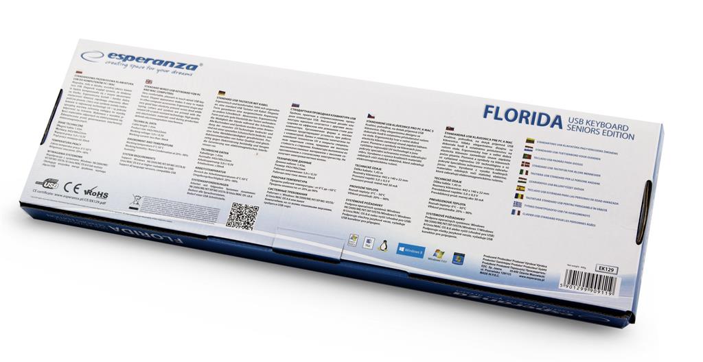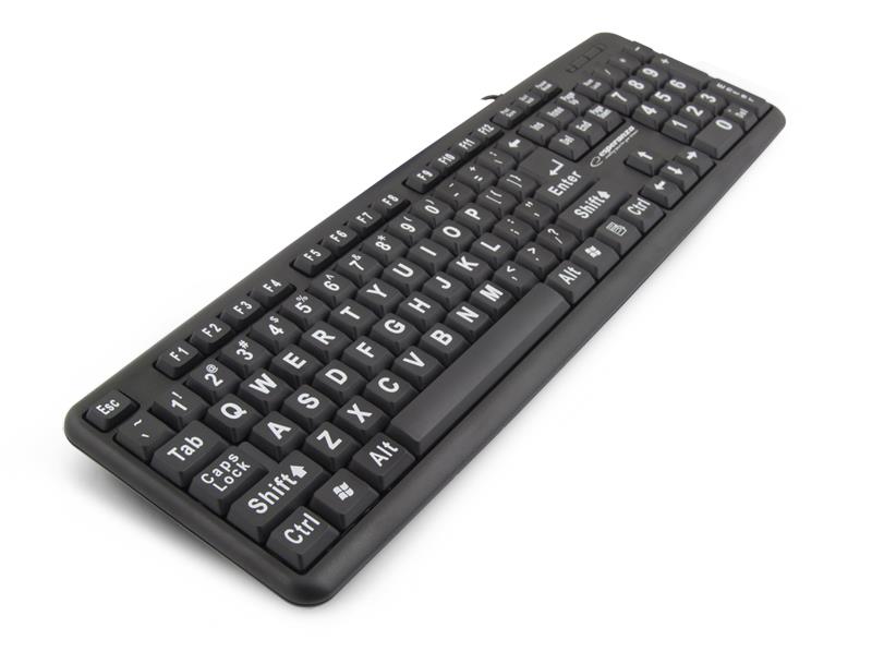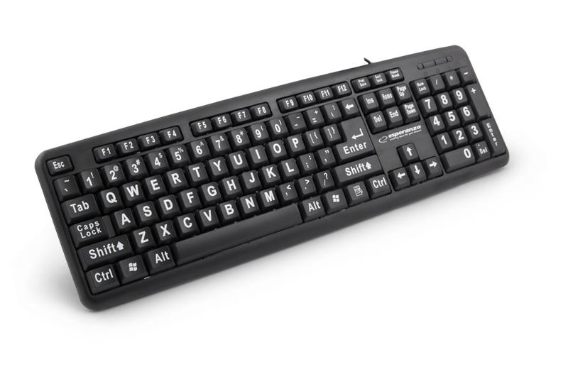 | Opis ogólny | Klawiatura przewodowa Esperanza EK129 Florida z dużymi literami USB czarna |