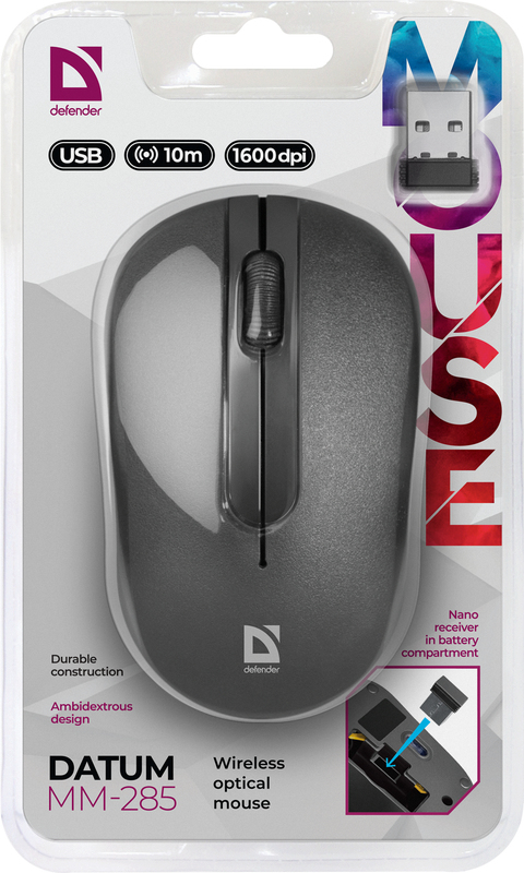 | Opis ogólny | Mysz bezprzewodowa Defender DATUM MM-285 optyczna 1600dpi 3P czarna |