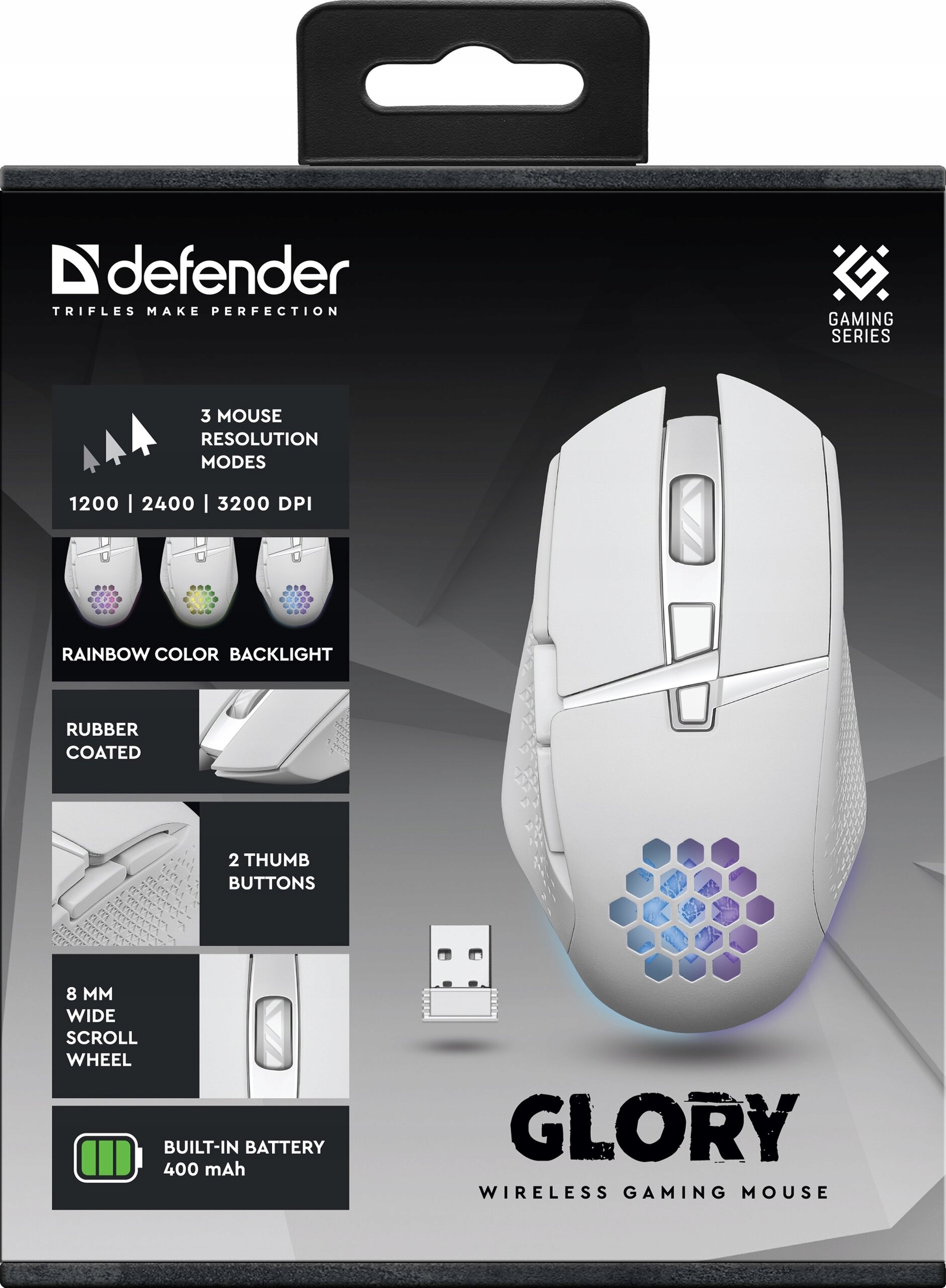 | Opis ogólny | Mysz bezprzewodowa Defender GLORY GM-514 optyczna 3200dpi biała RGB AKU |