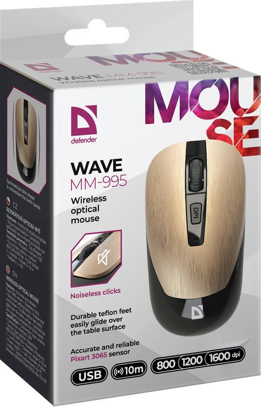 Mysz bezprzewodowa Defender WAVE MM-995 | Optyczna, bezklikowa, cicha | 1600 DPI | Złota