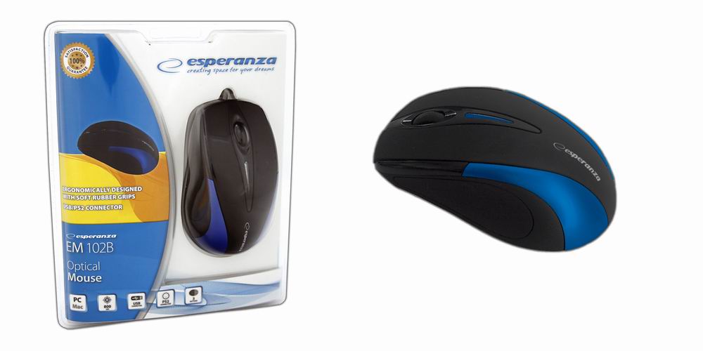 | Opis ogólny | Mysz przewodowa Esperanza SIRIUS EM102B optyczna czarno-niebieska |