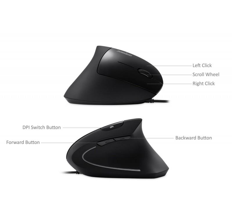 | Opis ogólny | Mysz przewodowa Perixx PERIMICE-513N optyczna wertykalna pionowa czarna |
