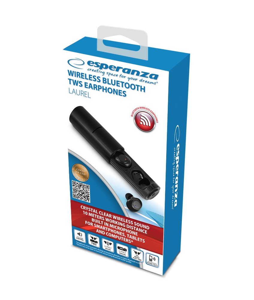 | Opis ogólny | Słuchawki z mikrofonem Esperanza TWS LAUREL EH227K bluetooth douszne |
