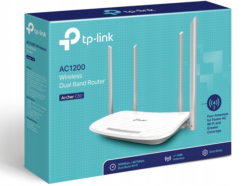 | Opis ogólny | Router TP-Link Archer C50 V6 Wi-Fi AC1200 4xLAN 1xWAN |