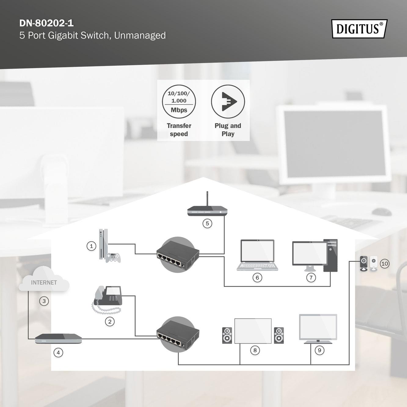 | Opis ogólny | Switch niezarządzalny 5-portowy Gigabit Ethernet 10/100/1000 Mini Metal Box |