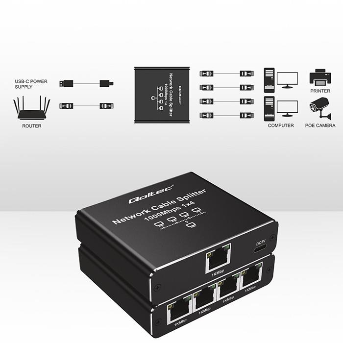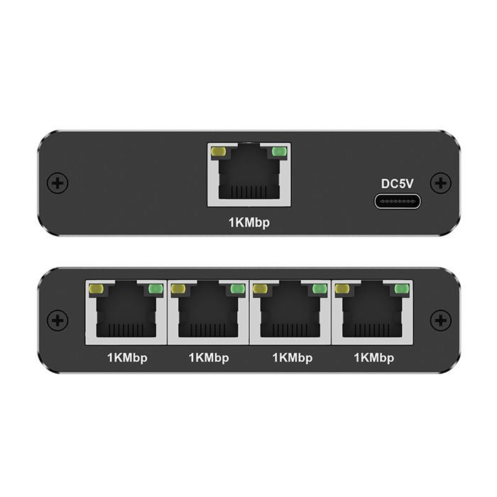 | Opis ogólny | 1000Mb/s, Mini SWITCH 1×4 RJ45, USB-C |
