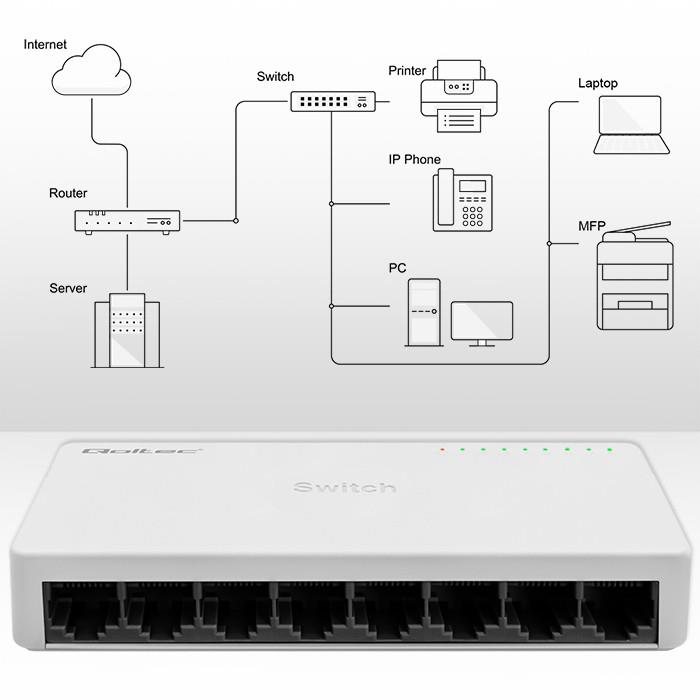 | Opis ogólny | 100Mbps, SWITCH 8 x port RJ45 |