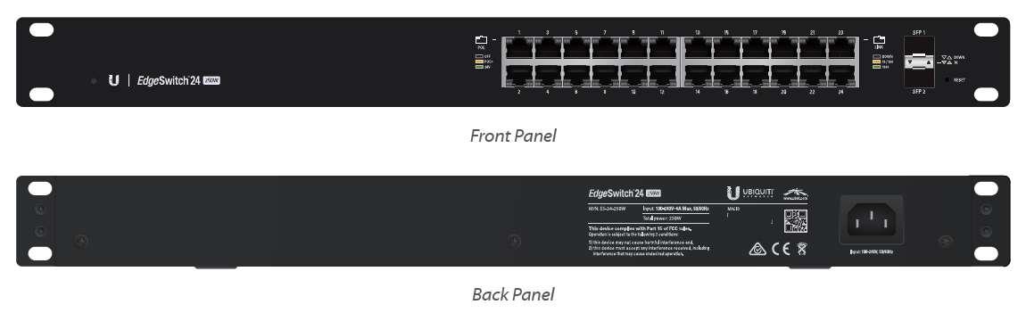 | Opis ogólny | Switch zarządzalny UBIQUITI EdgeSwitch 24×100/1000 2xSFP PoE+ 250W |