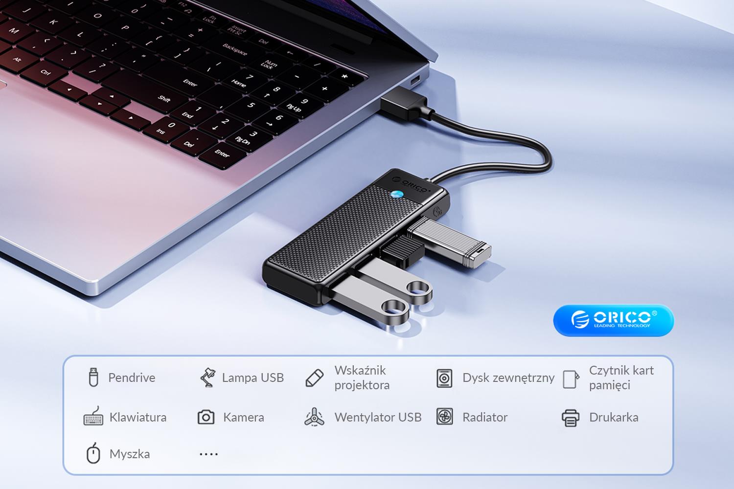 | Opis ogólny | HUB USB-A Orico PAPW4A-U3-015-BK-EP USB-A 4x USB-A 3.0 5Gbps czarny |