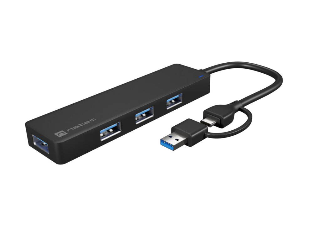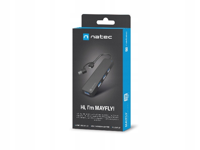 | Opis ogólny | Hub USB Natec Mayfly 4xUSB 3.0 czarny USB-C + Adapter USB-A |