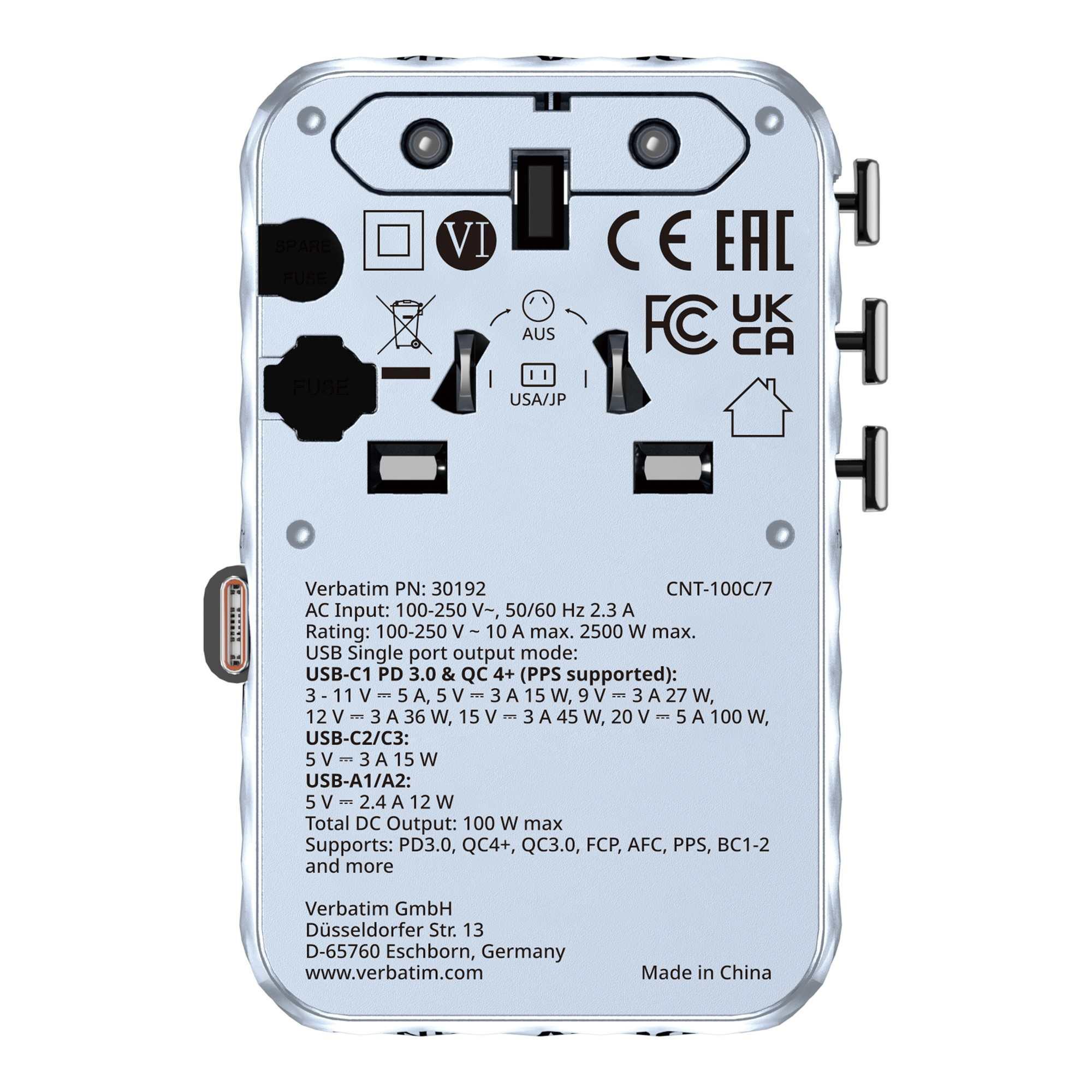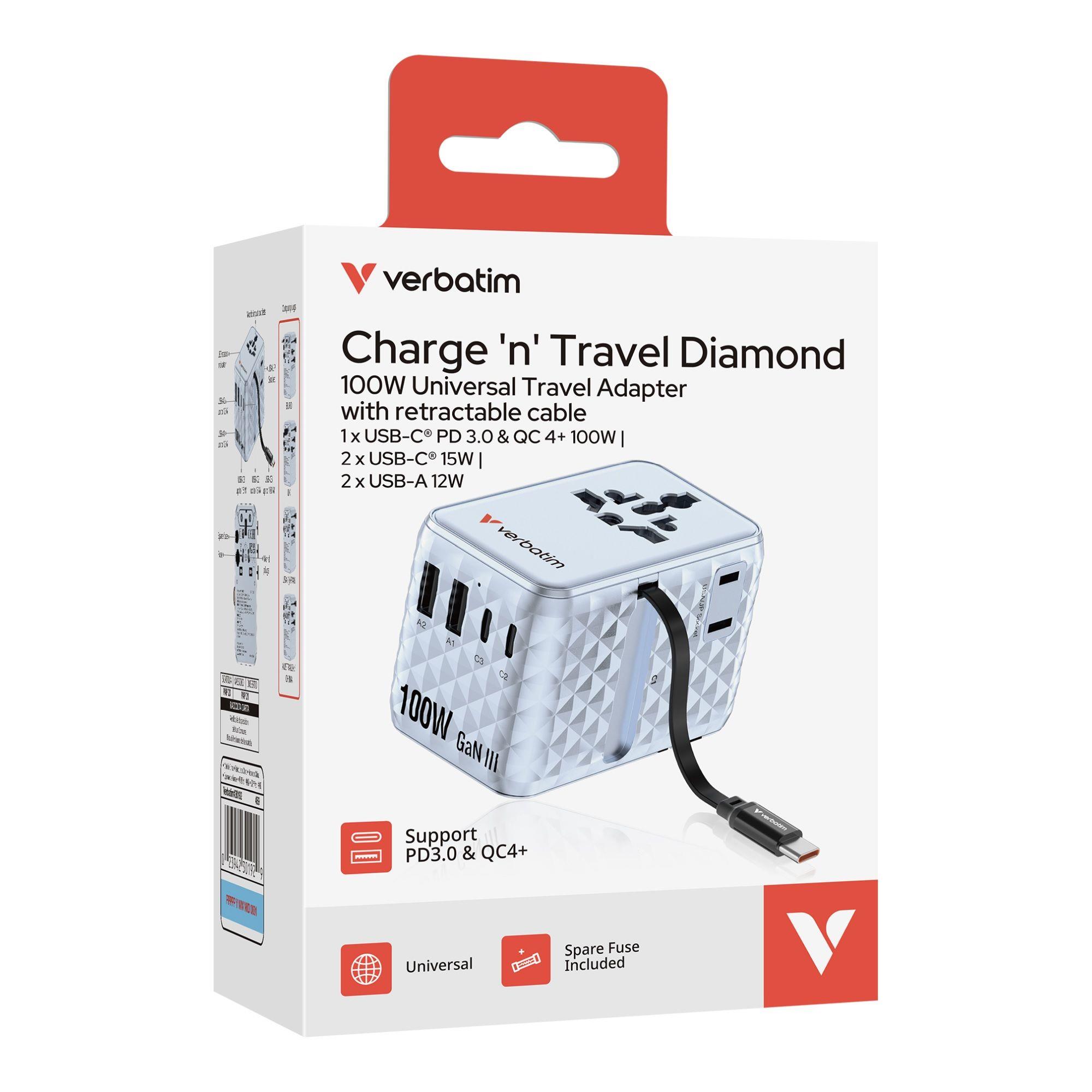 | Opis ogólny | Adapter podróżny Verbatim Charge 'n' Travel GaN III globalny 1xUSB-C PD 3.0 |