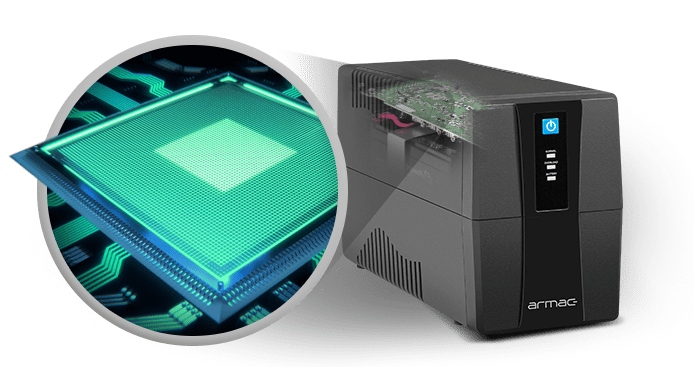 Nad poprawnym działaniem zasilania awaryjnego czuwa specjalnie wbudowany procesor, który kontroluje parametry samego urządzenia, jego poprawną pracę oraz zasilanie podłączonych sprzętów. Zastosowana w UPS-ie technologia zapewnia również automatyczne ładowanie baterii w trybie Stand-By oraz samoczynne uruchomienie po powrocie zasilania sieciowego.