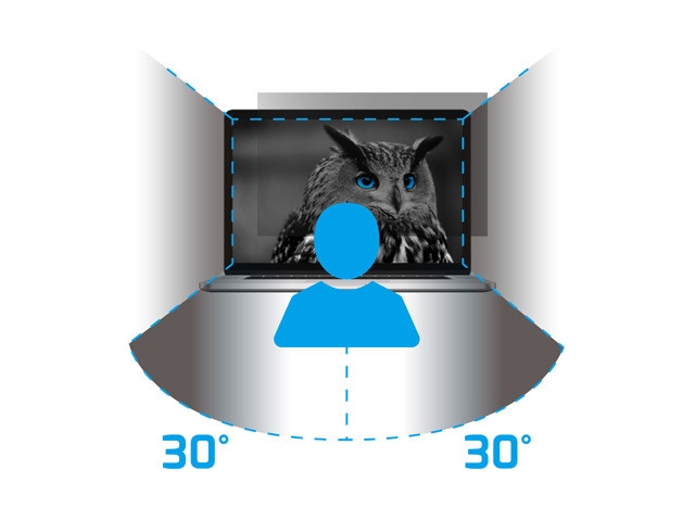 W czym tkwi tajemnica filtra prywatyzującego? Na pierwszy rzut oka przypomina zwykłą folię ochronną, w rzeczywistości zbudowany z 10 warstw działa dzięki zastosowanej technologii mikro-żaluzji. Już pod niewielkim kątem obraz jest na tyle przyciemniony i zniekształcony, żeby przeszkodzić w odczytaniu danych, a od 30 stopni ekran staje się całkowicie czarny. Pewnie nie jedna osoba zastanowi się, dlaczego patrzymy w wygaszony ekran.