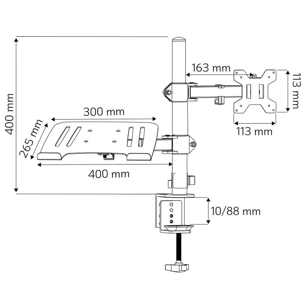 | Opis ogólny | Uchwyt biurkowy Techly 13'-32", z półką na laptopa 12"-17" regulowany |