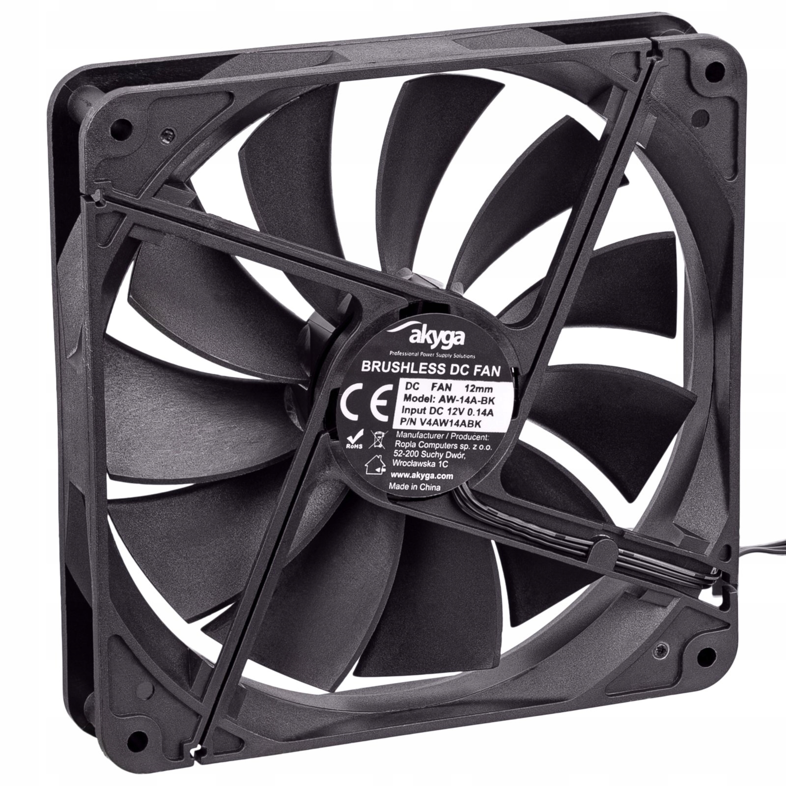 | Opis ogólny | Wentylator systemowy Akyga AW-14A-BL 14cm czarny Molex + 3pin |