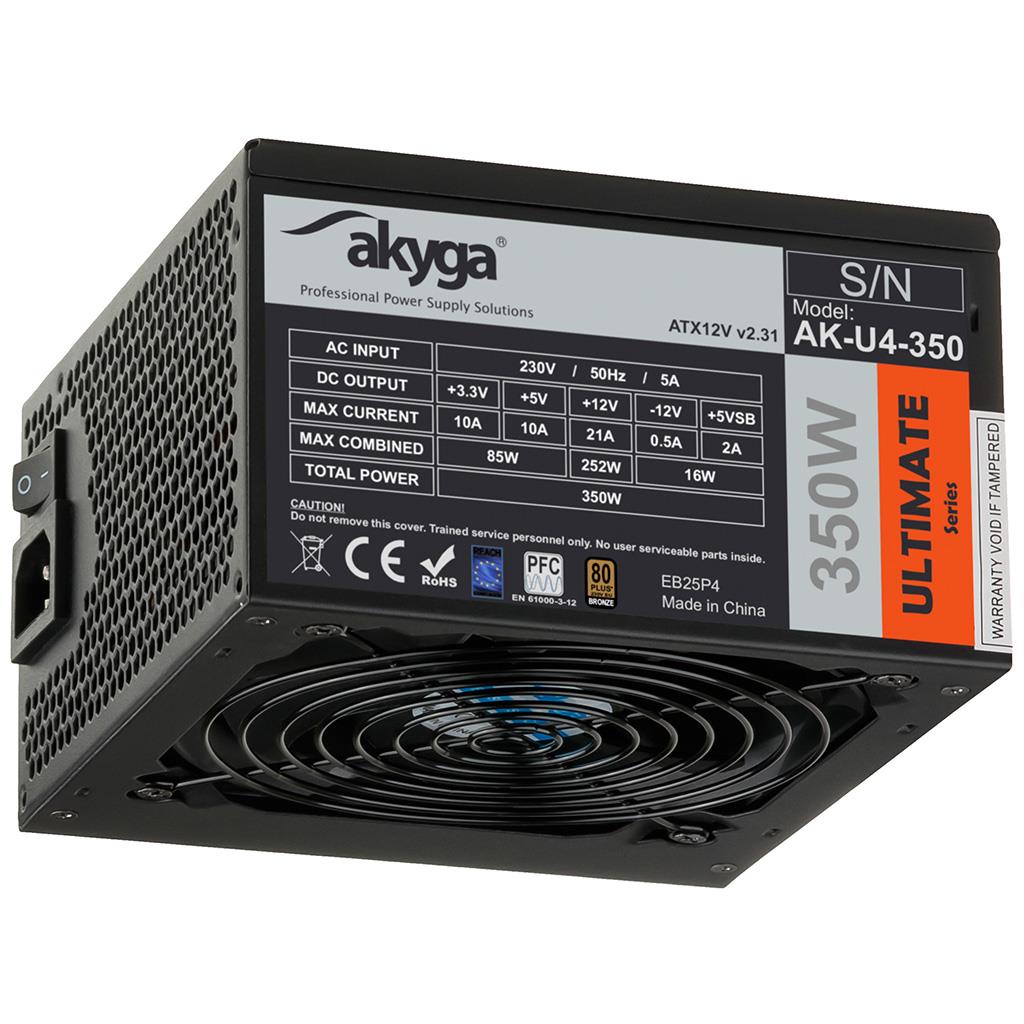 | Opis ogólny | Zasilacz ATX 350W Akyga Ultimate AK-U4-350 80+ Bronze Fan12cm P8 4xSATA PCI |