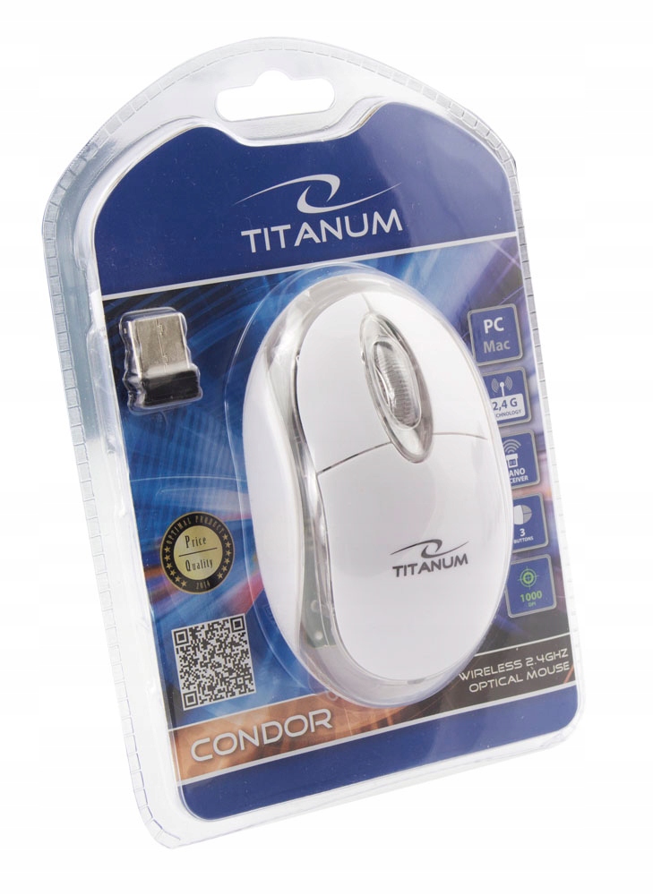 | Opis ogólny | Mysz bezprzewodowa Titanum 3D Condor optyczna 2.4 GHz biała |