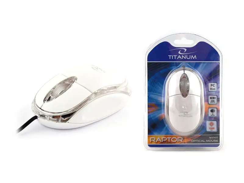| Opis ogólny | Mysz przewodowa Titanum 3D RAPTOR TM102W optyczna biało-przezroczysta |