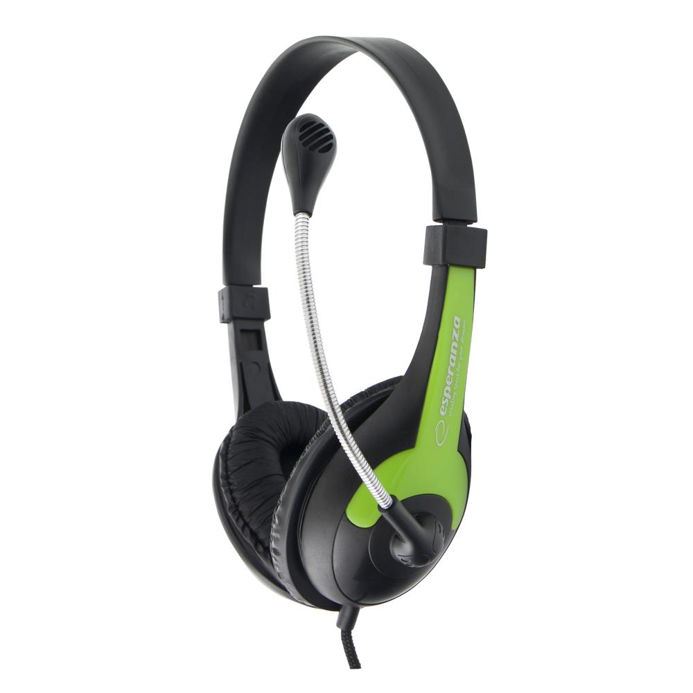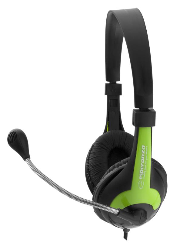 | Opis ogólny | Słuchawki z mikrofonem Esperanza Rooster czarno-zielone |