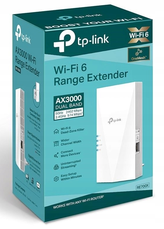 | Opis ogólny | Wzmacniacz sygnału TP-Link RE700X 802.11a/b/g/n/ac/ax |